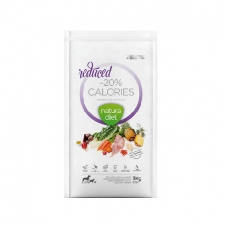 Découvrez Natura Diet REDUCED -20% CALORIES, une alimentation naturelle complète spécialement formulée pour les chiens adultes en surpoids, indépendamment de leur race ou de leur taille. Cette formule biologiquement adaptée aborde progressivement, mais en toute sécurité, le défi du surpoids, garantissant que votre animal connaisse une réduction de poids équilibrée sans compromettre ses besoins nutritionnels.