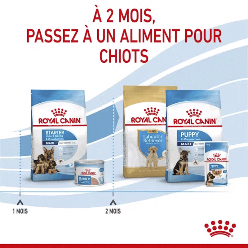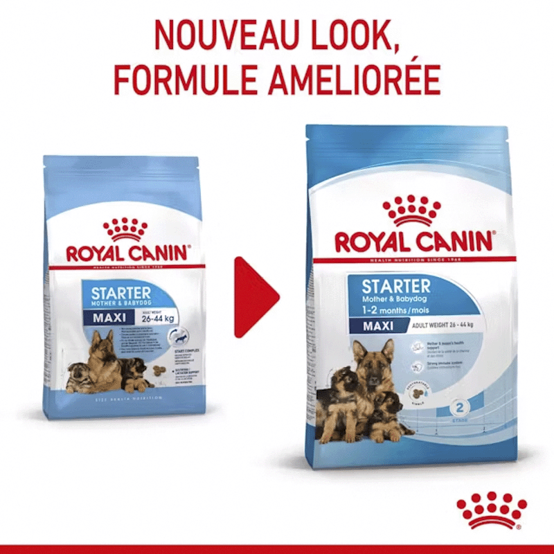 MAXI STARTER : Nutrition adaptée aux mères et aux chiots, soutenant une croissance optimale des chiots.