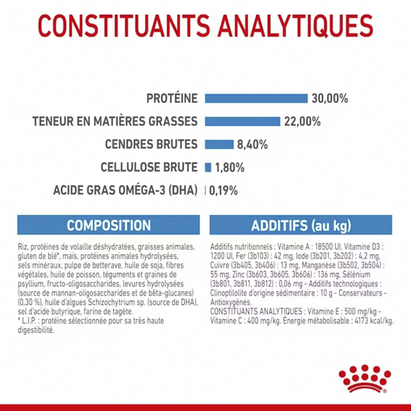 Chez Royal Canin, nous portons une attention particulière aux besoins uniques des chats et des chiens. Cette obsession pour les détails est ce qui nous permet de proposer une nutrition précise, efficace et adaptée ; et de les aider à donner le meilleur d'eux-mêmes, que ce soient des chatons ou des chiots qui ont besoin de lait, ou des animaux adultes plus sensibles aux problèmes digestifs. Nous collaborons avec des vétérinaires renommés et des experts scientifiques en nutrition et en comportement, et nous restons en contact régulier avec les propriétaires d'animaux de compagnie pour recueillir leurs commentaires.