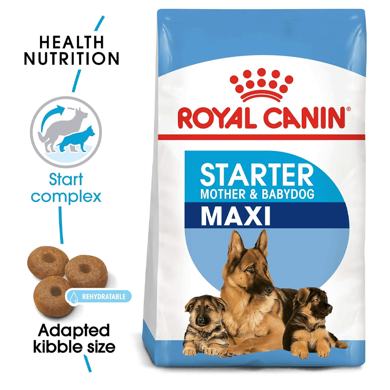 ROYAL CANIN® Maxi Starter Mother & Babydog est un aliment conçu pour les mères et les chiots de grande taille. Convient aux chiens adultes de grande taille et aux chiots sevrés jusqu'à 2 mois. Répond aux besoins énergétiques élevés des mères et favorise la croissance saine des chiots, même pour des portées considérables. Enrichi en vitamines C et E pour un système immunitaire sain. Contient des prébiotiques et des protéines hautement digestibles pour une flore intestinale saine et une digestion optimale. De plus, il contient des oméga-3 pour le développement cérébral des chiots. Le croquette se réhydrate facilement pour former une bouillie appétissante pour les chiots sevrés. Après 2 mois, vous pouvez passer à ROYAL CANIN® Maxi Puppy pour répondre aux besoins de croissance.