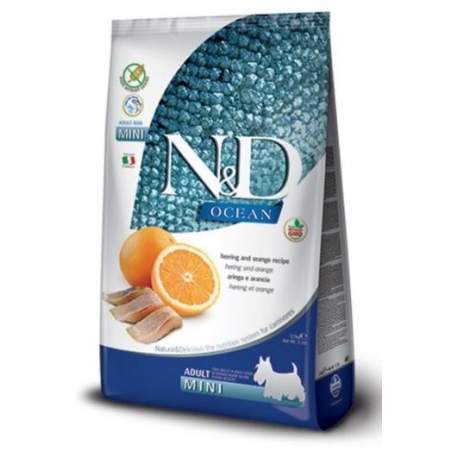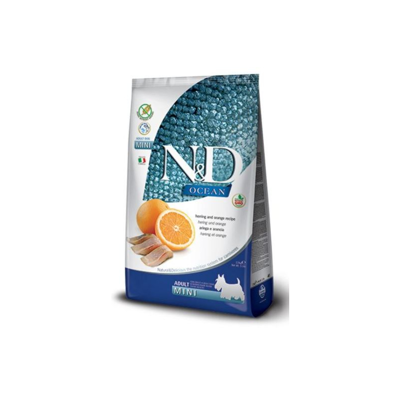 Le hareng, une source de protéines de haute valeur biologique, associé à ses antioxydants, contribue à une santé optimale. De plus, l'ajout d'orange ajoute une saveur rafraîchissante et une grande quantité de vitamine C. N&D Ocean Canine est spécifiquement conçu pour les chiens adultes miniatures, leur fournissant les nutriments appropriés pour leur taille et énergie. Son mélange unique est complété par des ingrédients naturels tels que l'oxyde de magnésium, reconnu pour sa teneur élevée en minéraux essentiels. D'autres avantages incluent une amélioration du système digestif pour aider à réduire les problèmes gastro-intestinaux, une peau et un pelage sains et des articulations plus fortes grâce à la teneur en calcium, magnésium, vitamine A et acides gras essentiels présents dans le produit.