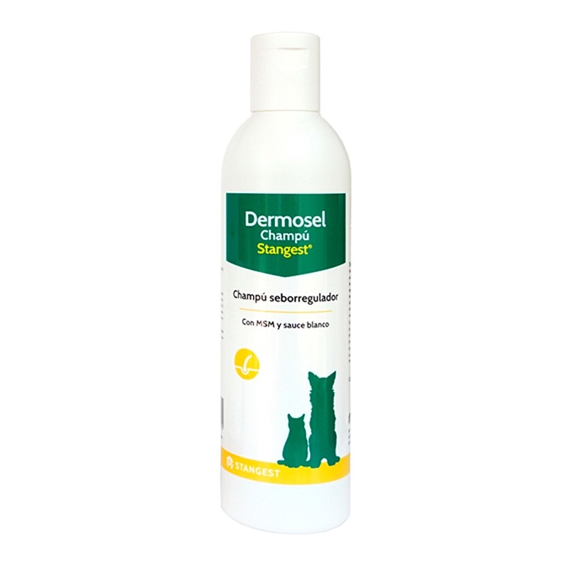 Stangest Dermosel Shampooing est un soin topique conçu pour traiter la séborrhée chez les chiens et chats. Sa formule concentrée aide à réguler l’excès de sébum, améliorant la santé de la peau et du pelage.