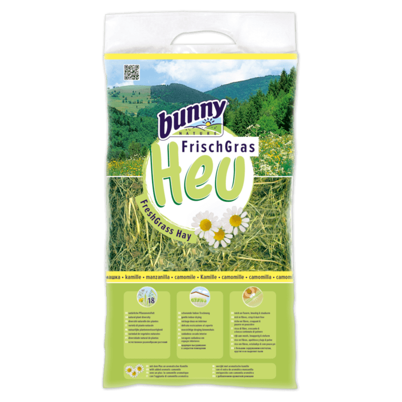 Le foin est un aliment de base pour de nombreux animaux. Le pourcentage de foin dans le menu est élevé, donc sa qualité est très importante. C'est un facteur décisif pour le niveau d'acceptation, mais aussi pour une alimentation équilibrée et pour répondre de manière intégrale aux exigences nécessaires. Le foin FreshGrass de Bunny offre la plus haute qualité avec la plus grande diversité de plantes.