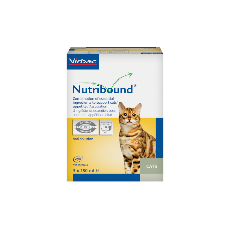 Nutribound est un complément nutritionnel liquide hautement efficace et délicieux, spécialement formulé pour la phase de récupération ou de convalescence chez les chats après une chirurgie. Chaque emballage contient 3 bouteilles de 150 ml, assurant un approvisionnement adéquat pour soutenir le processus de récupération de votre félin.