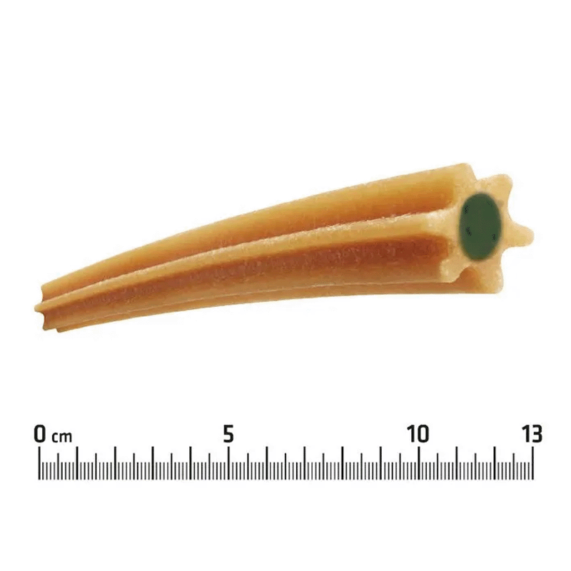 Le bâtonnet, spécialement conçu pour les chiens de taille moyenne, a une forme spéciale qui contribue à éliminer les résidus alimentaires des dents de votre animal.