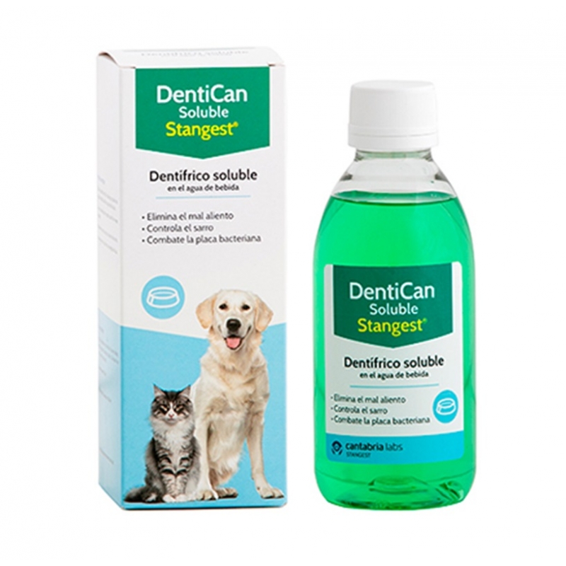 DentiCan est un dentifrice soluble à usage quotidien développé par Stangest pour protéger la santé bucco-dentaire de votre chien ou chat. Sa formule liquide s’ajoute facilement à l’eau de boisson, constituant une alternative idéale pour les animaux qui ne tolèrent pas le brossage.