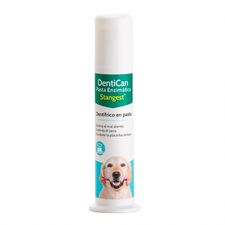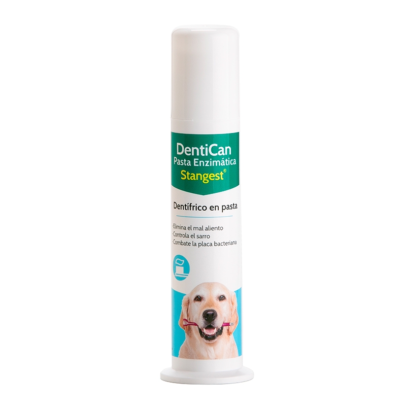 Stangest Dentican Pâte Dentaire est idéale pour garder propres et sains les dents des chiens et des chats, tout en rafraîchissant leur haleine. Sa formule à triple effet combat la plaque bactérienne, aide à contrôler le tartre et élimine les mauvaises odeurs. Avec des ingrédients actifs comme le fluorure de sodium et le digluconate de chlorhexidine, cette pâte dentaire offre un puissant effet antiplaque et blanchissant, sans besoin de rinçage.