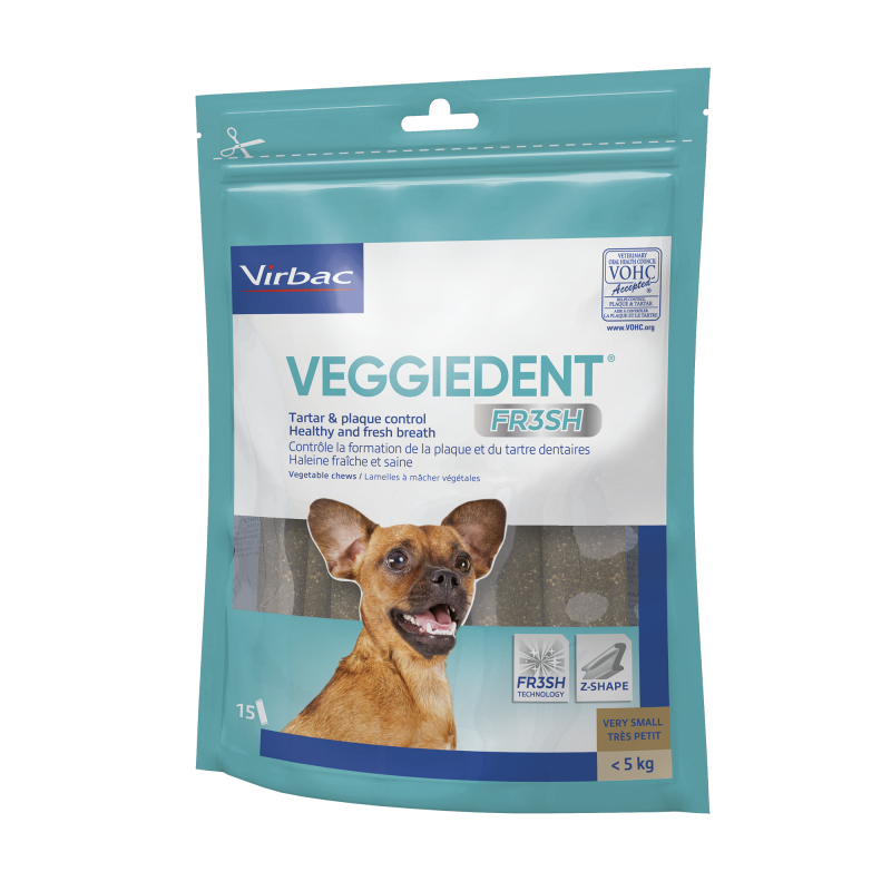 Nettoyage : Traitement des Causes Buccodentaires de la Mauvaise Haleine VEGGIEDENT® FR3SH® se distingue dans le nettoyage dentaire en attaquant les causes buccodentaires de la mauvaise haleine. La mastication de ces friandises dentaires contribue à éliminer la plaque dentaire et le tartre, réduisant ainsi les sources de bactéries responsables de la mauvaise haleine. En maintenant une bouche plus propre, les problèmes bucco-dentaires sont prévenus et une haleine fraîche et saine est favorisée.