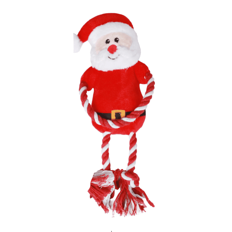 Jouet de Noël pour chiens avec corde et son, en polyester + EVA (28×12×5 cm), facile à attraper, résistant et parfait pour tirer, secouer et jouer en intérieur.