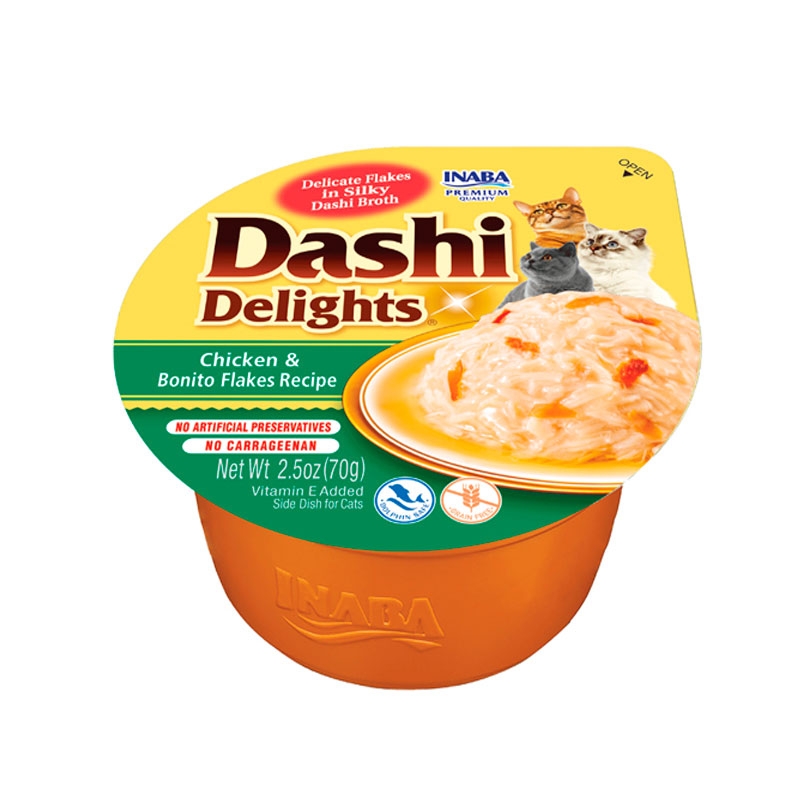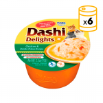 Caldo au goût de coquille Saint-Jacques, poulet (38,7 %), saumon (1,3 %), tapioca (séché), copeaux de bonite.