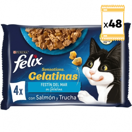 Variété de Recettes de Poisson : Le pack Felix Sensations Gelées offre deux saveurs délicieuses : saumon avec crevettes en gelée et truite avec épinards en gelée. Cette variété garantit que votre chat profite d'une alimentation diverse et excitante.