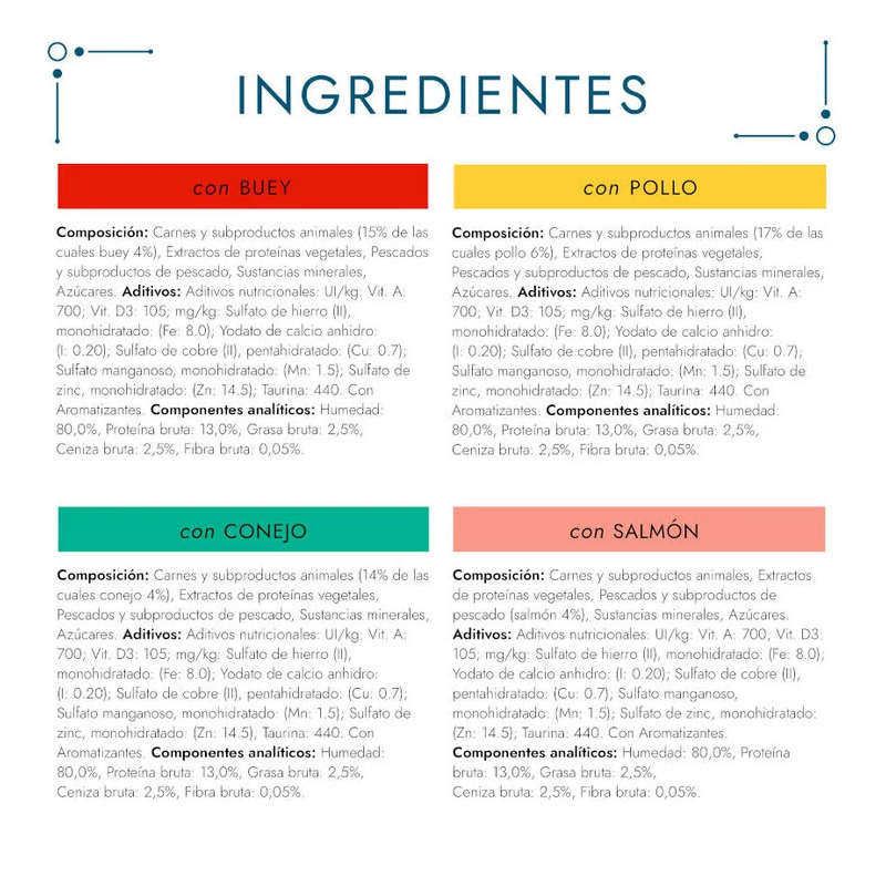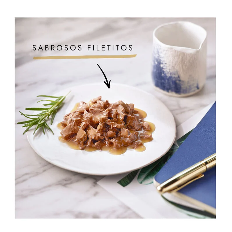 Les Fines Tranches de Gourmet se caractérisent par leurs morceaux de viande coupés en fines tranches, ce qui offre une texture différente et une nouvelle expérience tant en saveur qu'en sensation. Les recettes incluent viande de bœuf, poulet, lapin et saumon, garantissant que votre chat profite de variété et ne s'ennuie pas des mêmes saveurs chaque jour. De plus, les recettes sont formulées pour répondre aux besoins nutritionnels des chats, avec des protéines, des vitamines et des minéraux qui contribuent à leur santé optimale.