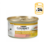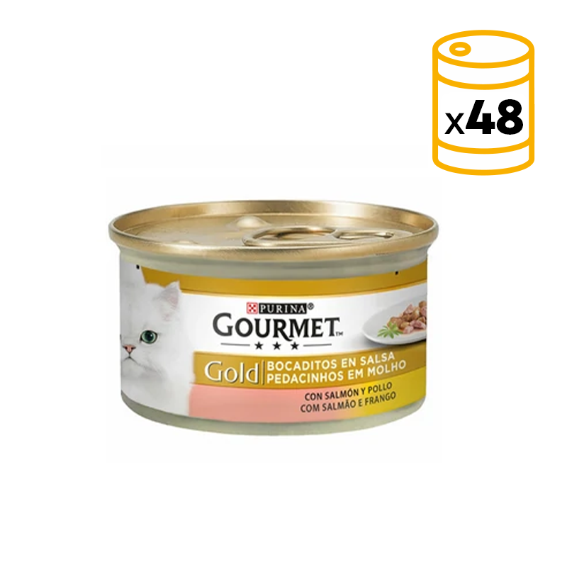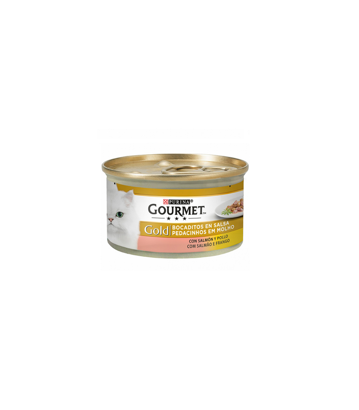 Gourmet Gold Morceaux en sauce avec saumon et poulet est un aliment sain et naturel spécialement élaboré pour rendre heureux aux chats plus raffinés.