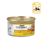 Purina Pro Plan a crée pour la gamme Gold de nourriture humide pour chat une savoureuse recette avec poulet et carotte avec une texture douce et exquise. Cette boîte est composée par petites portions de poulet et carottes.