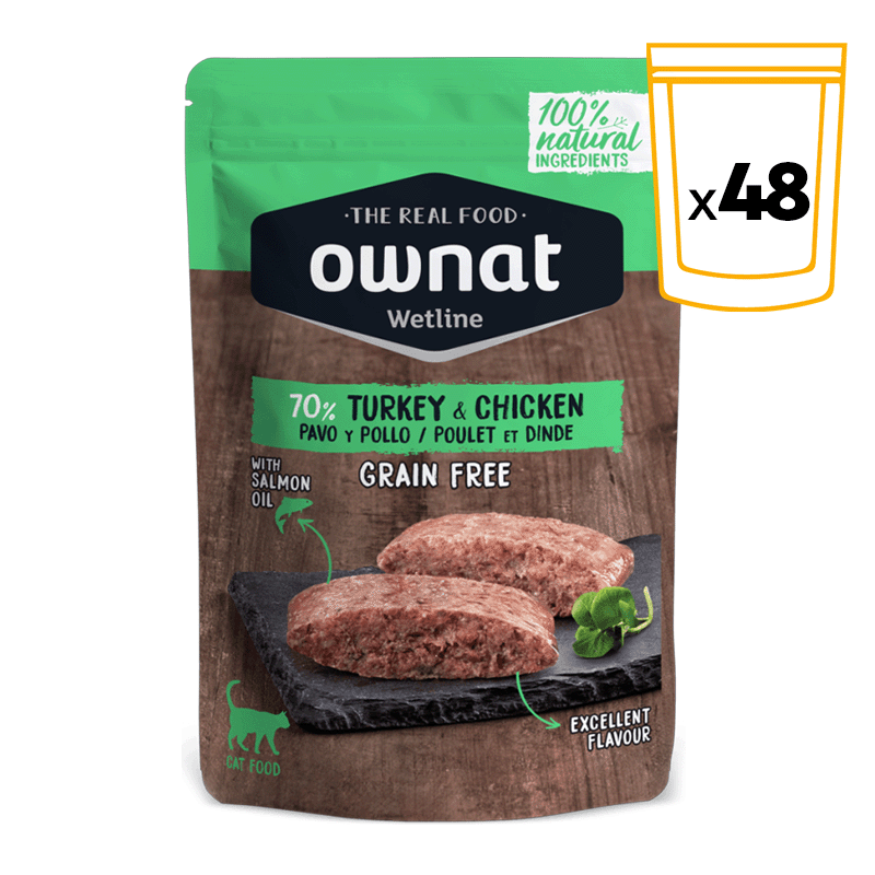Si vous recherchez une nourriture humide pour chats qui soit savoureuse, naturelle et hautement nutritive, la Ownat Wetline Dinde et Poulet est le choix parfait pour garantir que votre chat reçoive un régime complet et sain.