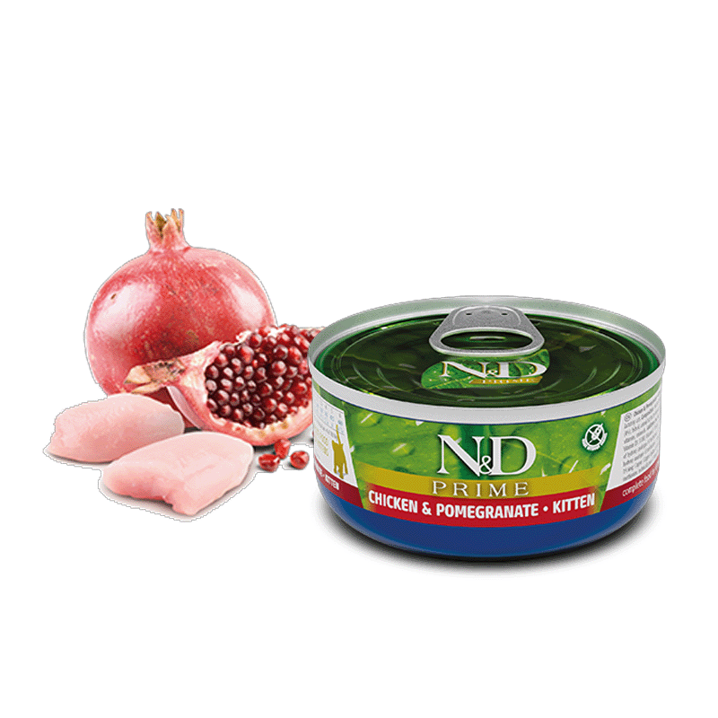 N&D Prime Feline offre une alimentation complète pour les chatons, les chats gestants ou allaitants, avec du poulet et de la grenade fraîche.