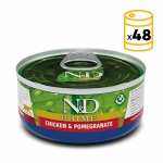 N&D Prime Feline : Aliment complet pour chats adultes au poulet et à la grenade, offrant une nutrition premium et équilibrée.