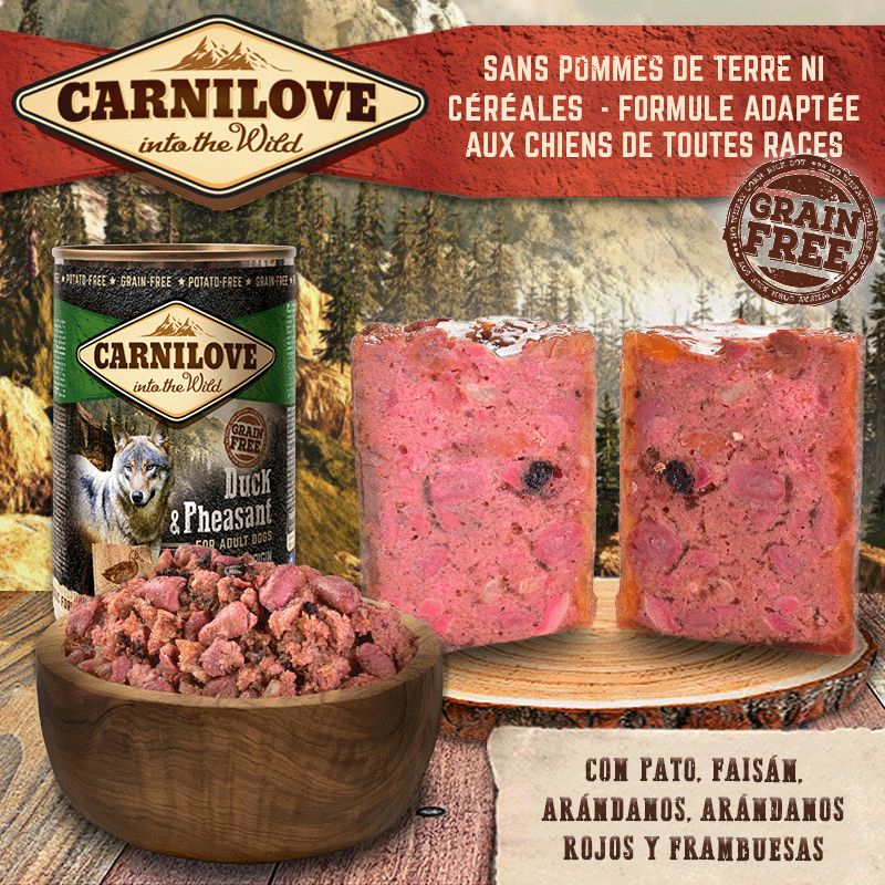 CarniLove into the Wild humide de Dinde et petit pois sont des boîtes de nourriture humide et holistique, apte pour tout type de chiens adults. Il est un