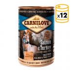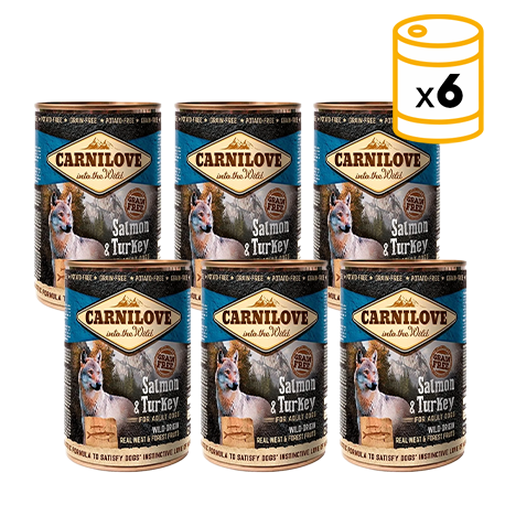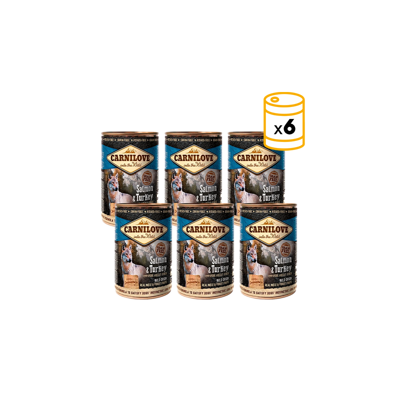 Les boîtes de pâté Carnilove Saumon & Dinde pour chiens adultes sont un complément parfait pour une alimentation saine et naturelle de votre animal. Grâce à leur teneur en acides gras Omega-3, elles apportent de la brillance et de la qualité à la peau et au pelage de votre chien. Convient à toutes les tailles de races.