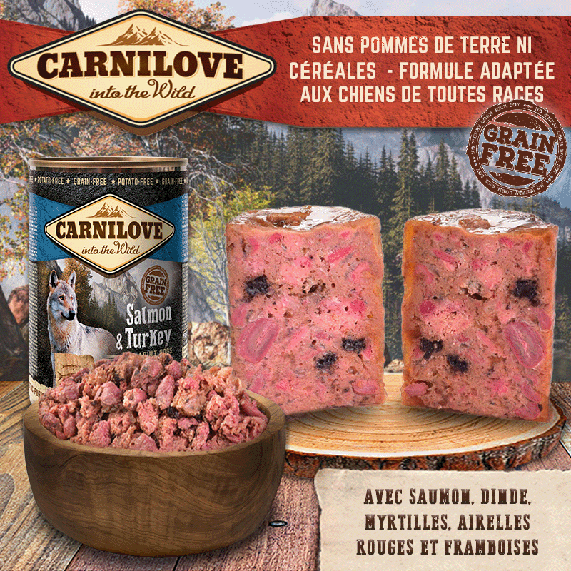 Carnilove se concentre sur la vitalité et le bien-être des chiens et des chats ; nous offrons une large sélection de sources de protéines de qualité supérieure, inspirées de l'alimentation naturelle des animaux. Nos gammes comprennent des ingrédients soigneusement choisis tels que le renne, le canard, le faisan, la dinde, l'agneau, le sanglier et le saumon, conçus pour imiter la composition des proies capturées dans la nature, fournissant les acides aminés essentiels dont ils ont besoin. De plus, nous complémentons ces ingrédients avec des fruits sauvages, des légumes frais, des baies sauvages et des herbes, riches en vitamines naturelles, en antioxydants et en autres nutriments essentiels pour une santé optimale.