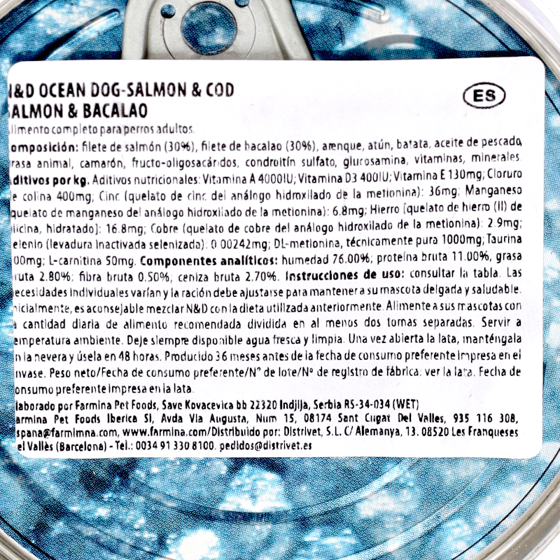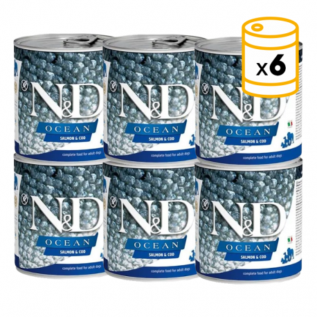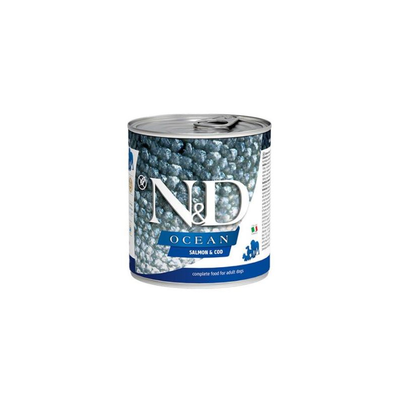 La Nourriture pour Chiens N&D Ocean Canine au Saumon & Bacalao pour Adultes de Farmina est la meilleure solution nutritionnelle pour répondre à tous les besoins alimentaires des chiens adultes de toutes les races. Cette combinaison unique de nutriments essentiels atteint l'équilibre idéal pour le développement et le maintien d'une santé optimale. Ce repas est enrichi en Oméga 3 et Oméga 6 pour une peau et un pelage sains et pour améliorer la qualité de la vision. Il contient également un mélange d'antioxydants pour lutter contre le stress oxydatif. Les produits laitiers aident à construire et régénérer la masse musculaire pour améliorer la capacité de performance du chien.