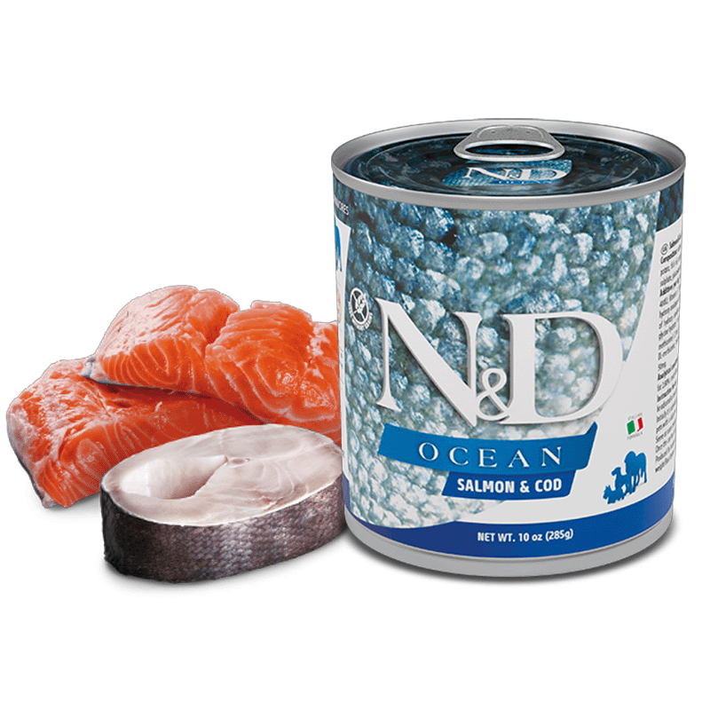La Nourriture pour Chiens N&D Ocean Canine au Saumon & Bacalao pour Adultes de Farmina est spécialement conçue pour les chiens adultes.