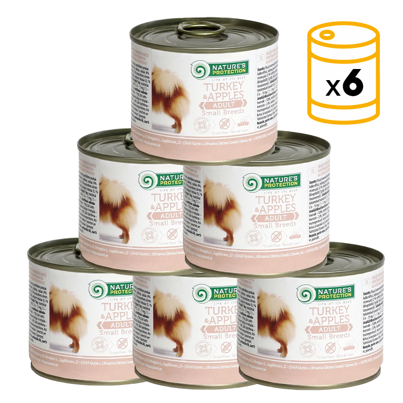 Composition : Viandes et sous-produits animaux (66% de dinde), fruits (4% de pommes), minéraux 1% (0,1% de clinoptilolite), huiles et graisses (0,1% d'huile de lin).