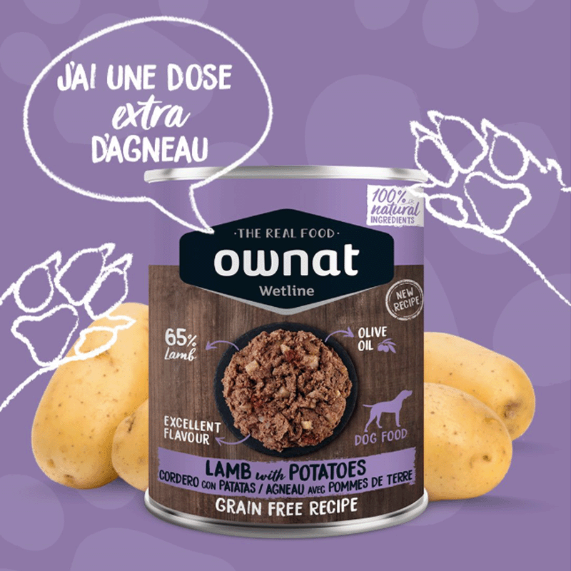 OWNAT WETLINE propose un aliment humide pour chiens utilisant exclusivement des viandes authentiques. Contrairement à d'autres marques, nous n'utilisons pas de viandes reconstituées, de farines ou d'os. Notre alimentation humide est composée uniquement d'ingrédients frais et naturels, garantissant à votre chien la meilleure nutrition possible.