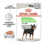 Royal Canin Digestive Care est un aliment complet pour chiens adultes à partir de 10 mois, sujets à des problèmes de sensibilité digestive. En délicieuse pâtée.