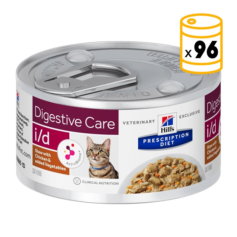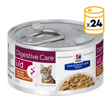 Hill's Prescription Diet i/d ragoût pour chats au poulet et aux légumes est complet pour les troubles digestifs.