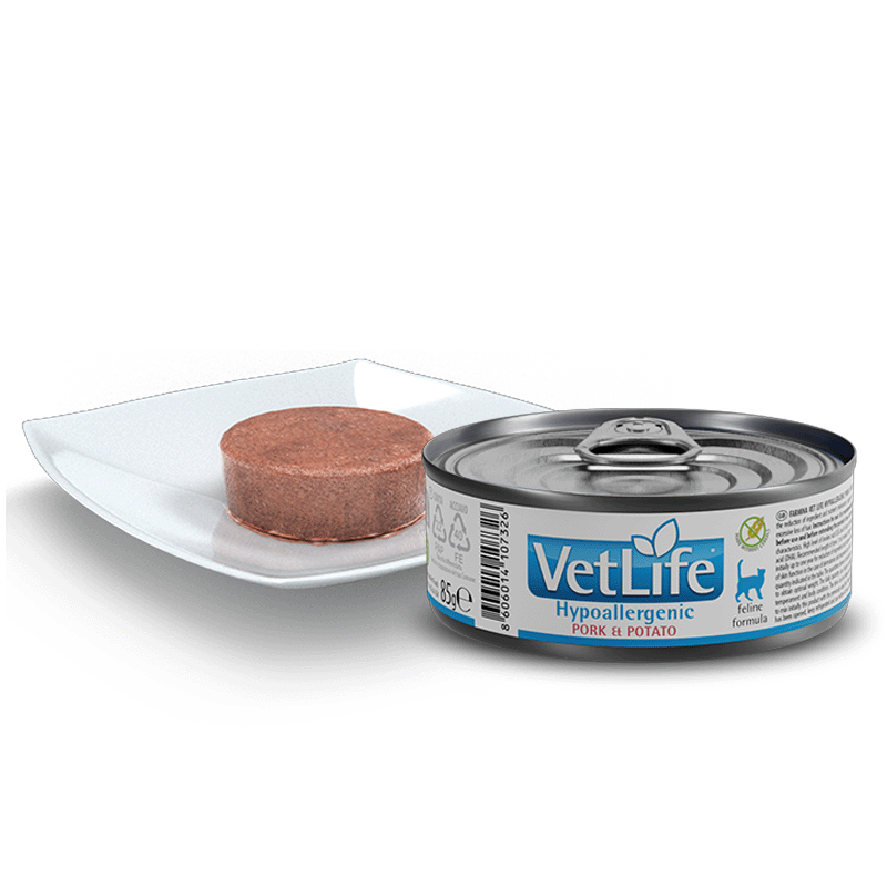 Farmina Vet Life presenta una solución eficaz con su comida Hypoallergenic Pork & Potato para gatos sensibles.