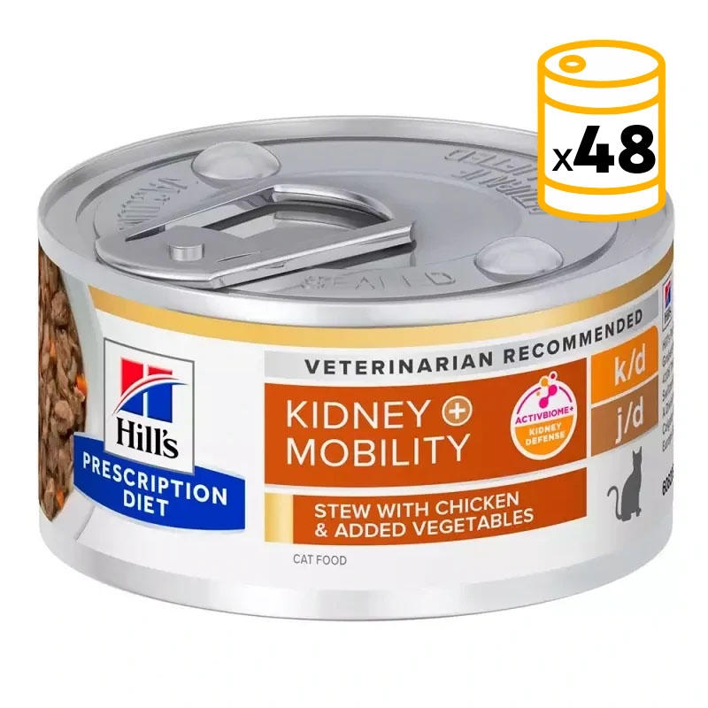 Hill's Prescription Diet k/d Mobility offre une nutrition complète pour les chats souffrant de problèmes rénaux et de mobilité.