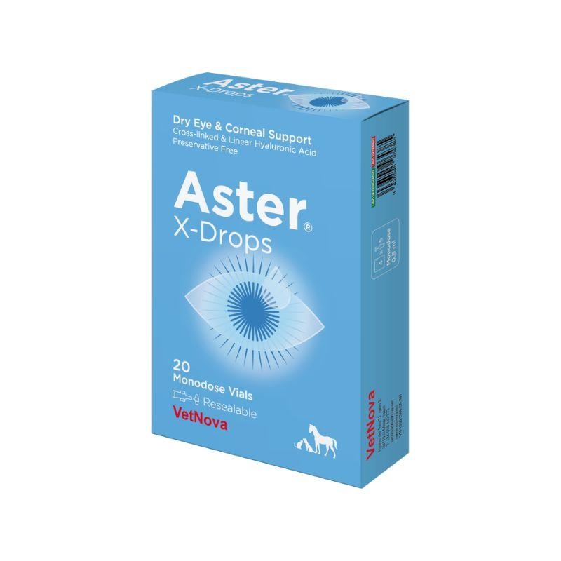 La solution ophtalmique Aster X-Drops est formulée pour fournir une hydratation intense et prolongée de la surface oculaire chez les chiens et chats. Grâce à la combinaison d’acide hyaluronique réticulé et linéaire, cette formule agit comme lubrifiant et hydratant, soulageant les inconforts liés à la sécheresse oculaire et favorisant le confort visuel. Présentation en monodose réutilisable (sans conservateurs) permettant une utilisation sûre lors de traitements continus.