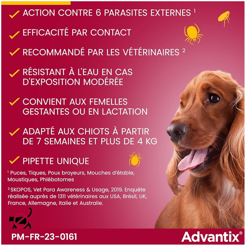 | Type de parasite | tiques, moustiques, puces |