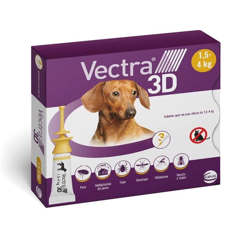 | Type de parasite | tiques, Larves, puces, moustiques, mouches |