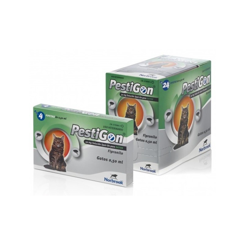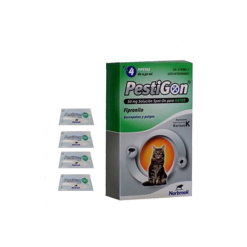 PESTIGON 50 mg SOLUTION SPOT-ON POUR CHATS. Pestigon, pipettes antiparasitaires pour chats. Indiqué pour les chats à partir de 8 semaines ou pesant plus de 1 kg ayant des problèmes de puces.