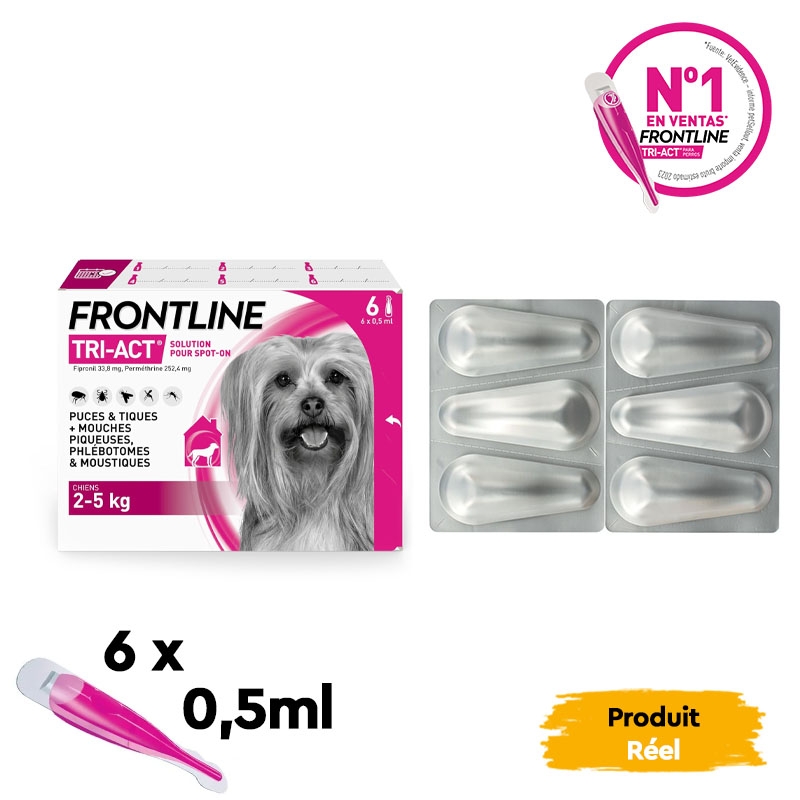 Découvrez la puissante défense offerte par la pipette antiparasitaire Frontline Tri-Act, spécialement formulée pour les chiens miniatures pesant de 2 à 5 kg. Ce traitement innovant en pipette combine l'efficacité du fipronil et de la perméthrine, offrant une action rapide contre les puces, les tiques, les poux et les moustiques, y compris ceux transmettant la leishmaniose.