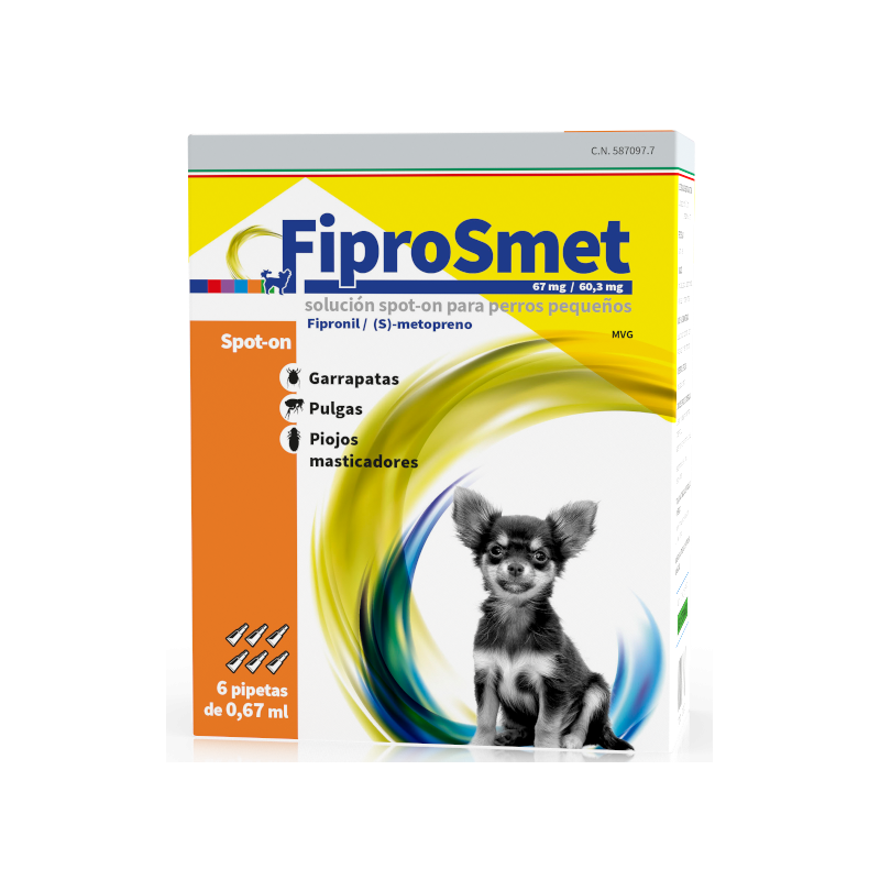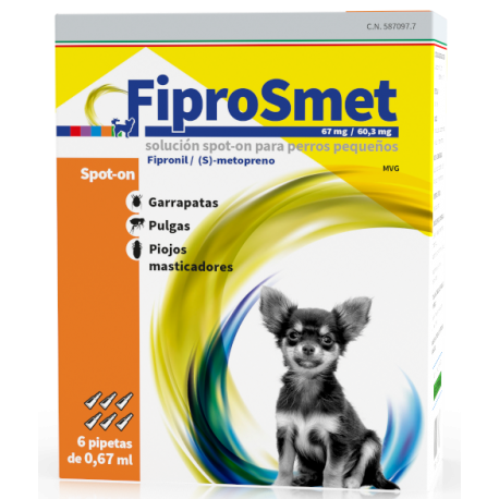 | FIPROSMET 67 mg/60,3 mg SOLUTION SPOT-ON POUR PETITS CHIENS | Petits chiens | 67 mg / 60,3 mg |