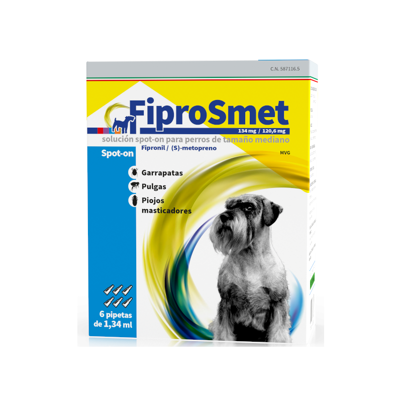 | FIPROSMET 134 mg/120,6 mg SOLUTION SPOT-ON POUR CHIENS MOYENS | Chiens moyens | 134 mg / 120,6 mg |