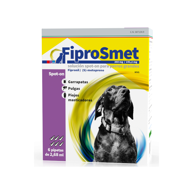 | FIPROSMET 268 mg/241,2 mg SOLUTION SPOT-ON POUR GRANDS CHIENS | Grands chiens | 268 mg / 241,2 mg |