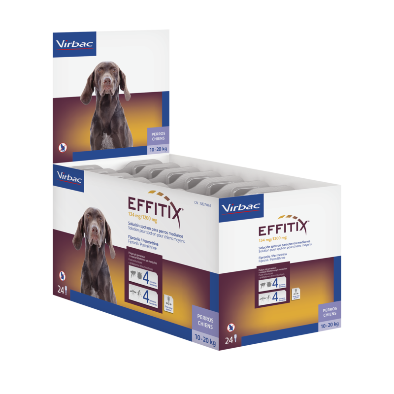 EFFITIX 134mg/1200mg SOLUTION POUR APPLICATION DORSALE PONCTUELLE POUR CHIENS MOYENS