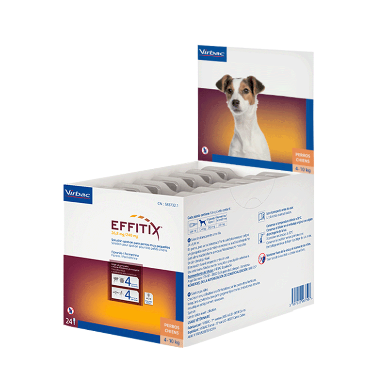 Les Pipettes Effitix de Virbac pour petits chiens, de 4 à 10 kg, représentent la dernière innovation en matière de répulsifs externes, offrant une défense complète contre les tiques, les puces, les moustiques et les phlébotomes pendant quatre semaines. Conçues en format spot-on pour une application directe sur la peau, ces pipettes offrent une prévention efficace contre les ectoparasites, des vecteurs potentiels de maladies telles que la leishmaniose, la babésiose, la borréliose et le ver du cœur.