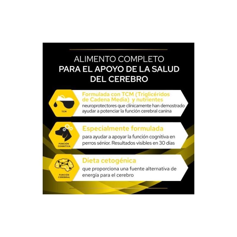 Source d'Énergie Cérébrale Alternative : Cette formule fournit une source d'énergie alternative pour le cerveau. Les acides gras à chaîne moyenne présents dans cet aliment peuvent servir de carburant cérébral alternatif, soutenant les fonctions cognitives chez les chiens plus âgés.