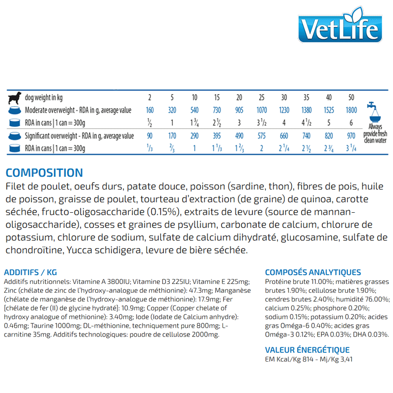 Soutien durable : Favorise une perte de poids sûre et durable, améliorant la qualité de vie du chien à long terme.
