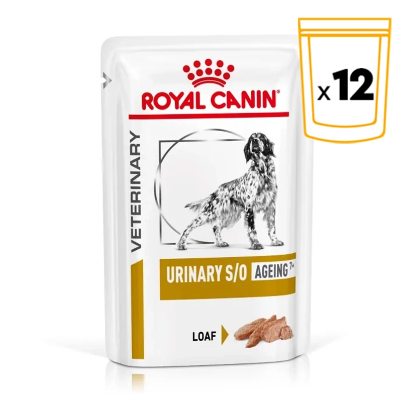 ROYAL CANIN® Urinary S/O Ageing 7+ est conçu pour les chiens âgés ayant des problèmes urinaires tels que des calculs et des cristaux de struvite. Ce régime est efficace pour dissoudre les calculs de struvite et est spécialement formulé pour traiter jusqu'à 80% des calculs urinaires.