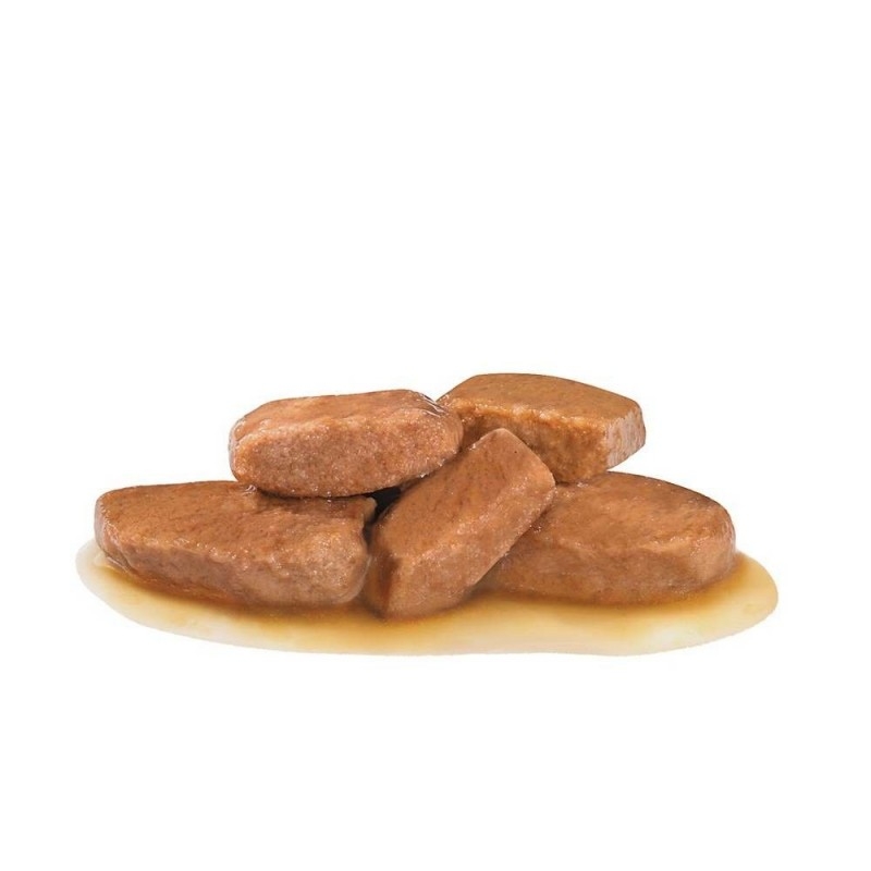Facile à mélanger: Les fines lamelles en sauce s'intègrent facilement aux régimes secs de la gamme ROYAL CANIN® RENAL, facilitant l'alimentation mixte et assurant une nutrition complète et équilibrée pour votre animal.