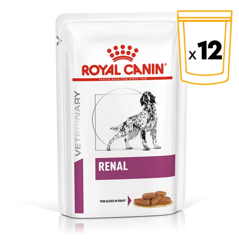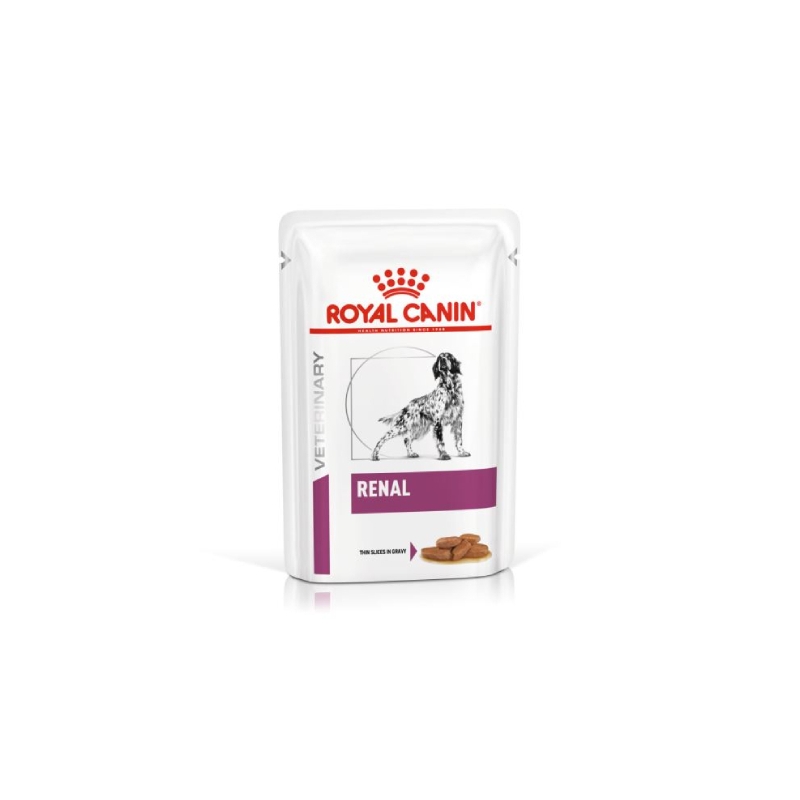 ROYAL CANIN RENAL fines lamelles en sauce est une alimentation complète et diététique pour chiens, spécialement formulée pour améliorer la fonction rénale dans les cas d'insuffisance rénale chronique. Ce produit a été conçu avec une teneur limitée en phosphore et des protéines de haute qualité pour fournir un soutien rénal efficace.
