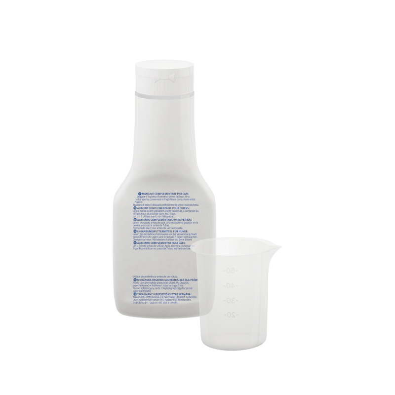 Dose recommandée : Consultez le vétérinaire pour ajuster la dose en fonction de la condition spécifique de l'animal. La dose quotidienne suggérée est de 6 ml par kg de poids, répartis en une ou plusieurs prises. Peut être administré seul, dans l'eau ou mélangé à la nourriture.