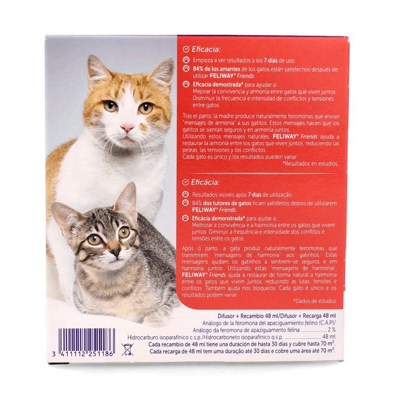 FELIWAY Friends Diffuseur est la solution idéale pour réduire les conflits entre vos chats et favoriser une coexistence harmonieuse à la maison. Ce diffuseur imite les phéromones faciales naturelles des chats, favorisant la tranquillité et réduisant le stress, créant ainsi un environnement détendu pour vos félins. Il est parfait pour les chats qui se battent, se poursuivent ou se sentent constamment bloqués, améliorant leur communication et réduisant les comportements agressifs.
