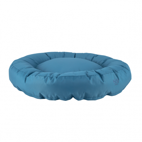 Cama donut para perros y gatos en color azul, resistente y cómoda, con funda extraíble, base antideslizante e impermeable, ideal para mascotas activas y uso diario.